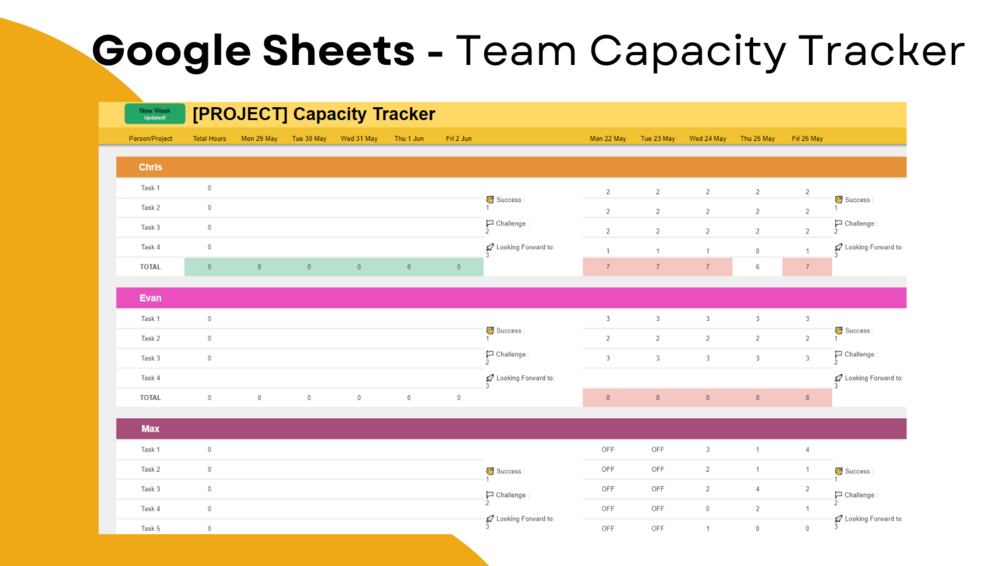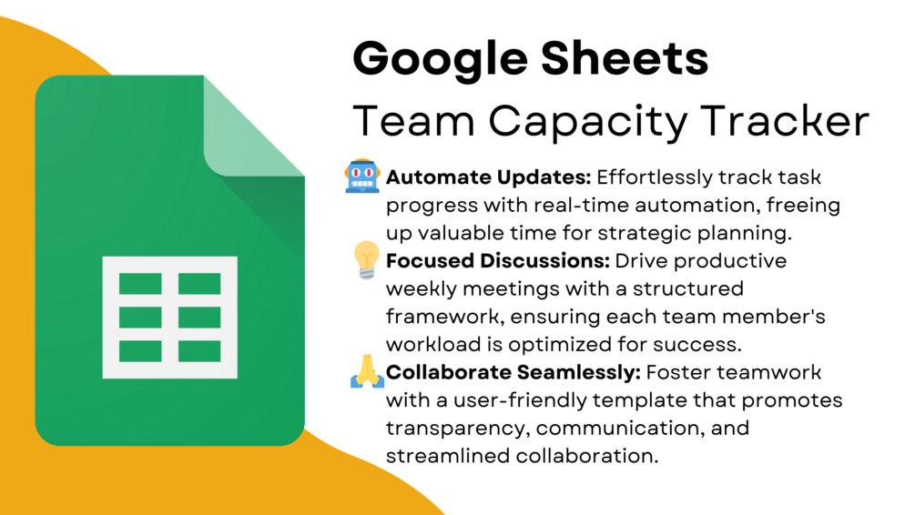 Are you tired of juggling multiple tasks and struggling to keep your team on the same page? Say goodbye to chaos and hello to efficiency with our revolutionary Team Capacity Meeting Google Sheets Template! This meticulously crafted digital tool is designed to elevate your weekly team meetings, providing a structured framework and powerful automations to ensure every member's plate is not just full, but optimized for success.
